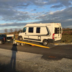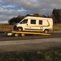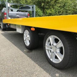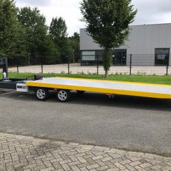The trailer’s loading floor is sliding/tilting, allowing easy drive-on for your vehicles.
